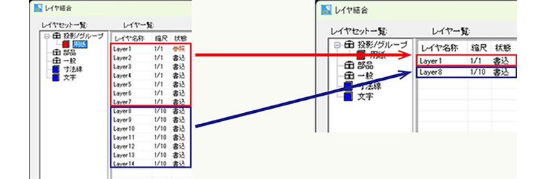 - 同縮尺レイヤをワンクリックで簡単に統合できる