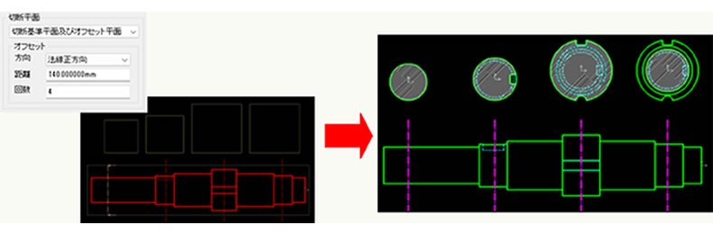 - 円や円弧に対して、一括で累進寸法を作図する機能を搭載