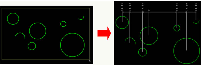 - 円を自動認識し、基準点と引き出し位置指定で作図可能